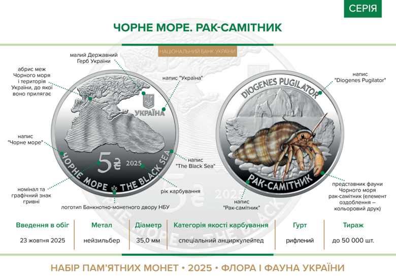 Національний банк України ввів в обіг набір із двох нейзильберових пам'ятних монет «Мешканці морських глибин», присвячений тваринам, які живуть у Чорному та Азовському морях.